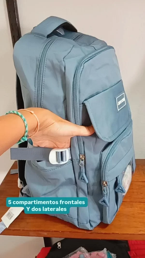 REFORZADA/ VARIOS COMPARTIMENTOS/ FORRADA EN TELA SILVER/ESPACIO PARA BOTELLAS.