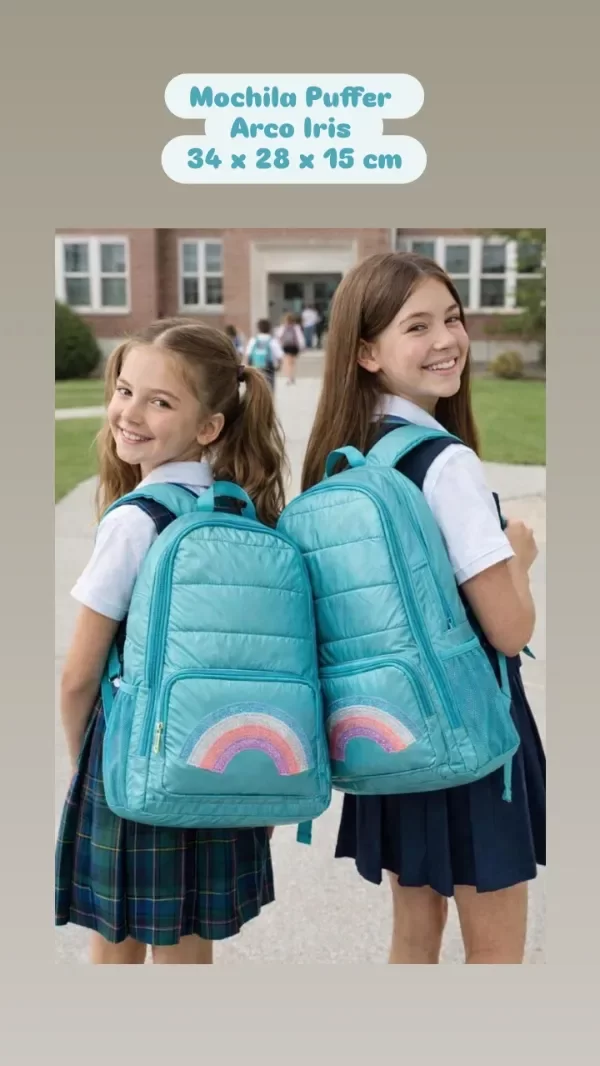 Tela Puffer. 3 compartimentos. Espacio para botella. Correas regulables